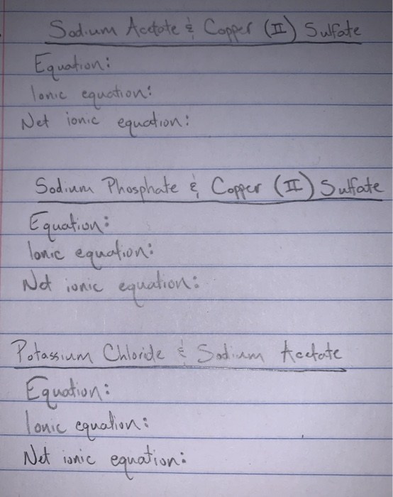 Solved Sodium Acetate Copper Ii Sulfate Equation Lonic Chegg Com